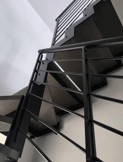 Imagina una vivienda unifamiliar con una escalera abierta en el centro de la casa. Aquí, la barandilla de cristal cumple sobre todo una función visual: dejar pasar la luz, no cerrar el espacio y acompañar el diseño interior.