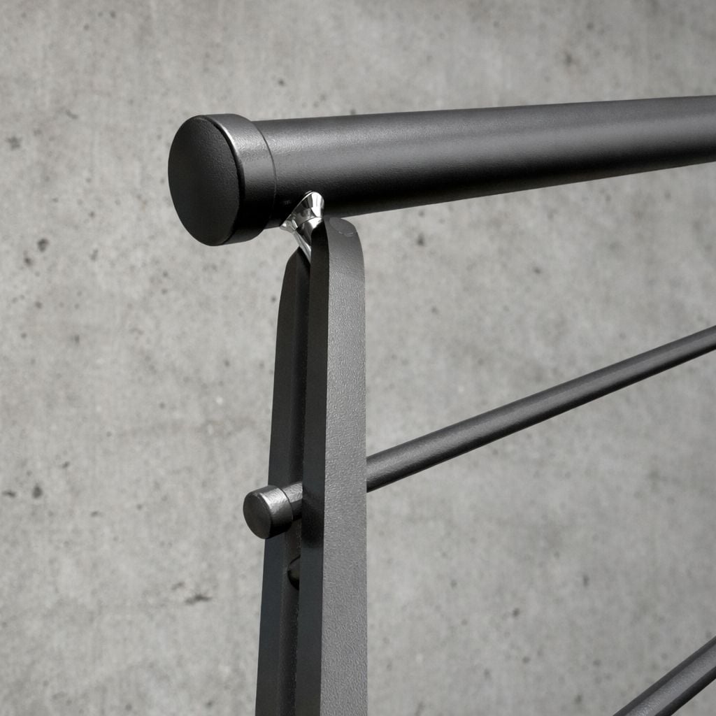- Pasamanos a elegir: plástico Ø42 mm, metal Ø42 mm o haya Ø50 mm.
