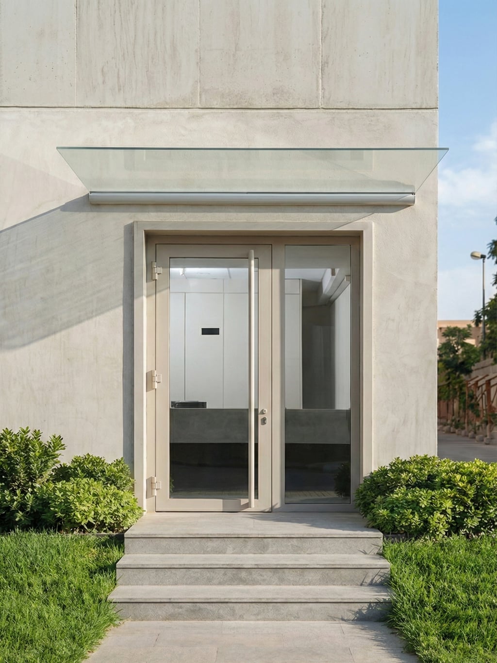 Una marquesina de vidrio actúa como barrera directa frente a la lluvia y otras condiciones climáticas, protegiendo puertas, ventanales y zonas de entrada sin alterar la arquitectura del edificio.